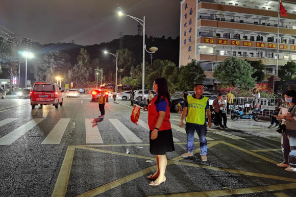 918搏天堂党团志愿者分队队员现场维护交通秩序